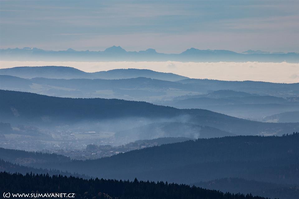 Jeden z nejkrásnějších výhledů na Šumavě se otevírá z vrcholu Pancíře. Otevře se nám pohled na Šumavu a daleko do Bavorska. Jako na dlani máme dominantu Železnorudska – německý Velký Javor s typickou radarovou stanicí a vysílačem a horskou chatou Arberschutzhaus. Za jasného počasí se nabízí nezapomenutelný pohled na Alpy.