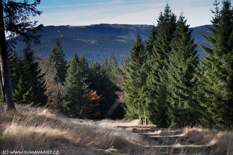 - od Sportovního areálu Špičák po zelené a dále po červené (3km).