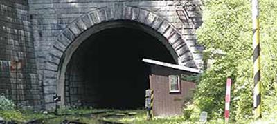 Mezi zastávkou Brčálník a stanicí Špičák prochází železniční trať pod Špičáckým sedlem tunelem dlouhým 1 747 metrů.